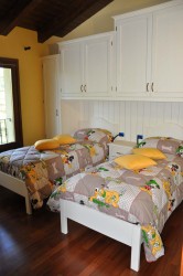 Cameretta costruita in legno su misura con 2 ampi letti. I letti hanno 2 comodi cassettoni sotto alla rete e nella ...