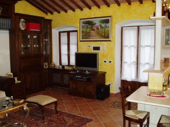 Mobile tv artigianale costruito su misura con amradio d'ingresso ricavato in una nicchia.